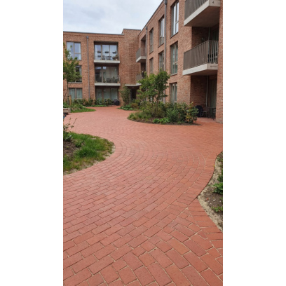 Клинкерная брусчатка «Лондон» классик R в классическом красном цвете с мягкими закруглёнными углами сочетает традиционный размер с продуманной эргономикой. Закруглённые углы не только придают изделию утончённый внешний вид, но и делают покрытие более долговечным — минимизируют риск случайных сколов и повреждений при эксплуатации.